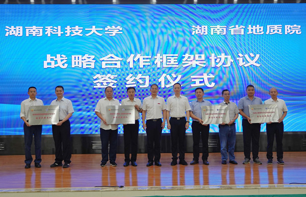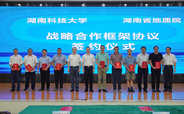 湖南科技大学相关部门负责人,省地质院相关部室及省地调所、地灾所、矿调所、物化所、地信所等负责人参加签约仪式。(转载自湖南省地质院)