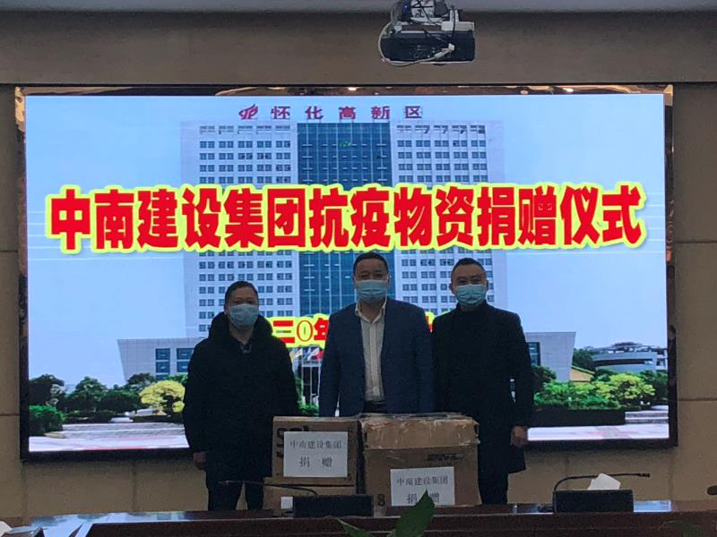 2月24日下午,我司董事长伍新民在副总经理谢斌奇、副总会计师兼行政综合部经理江方西及项目经理李宏伟陪同下,驱车近五个小时赶赴怀化,向怀化高新区捐赠第一批防控物资7000个口罩、15支额温枪,解高新园区部分企业复产复工燃眉之急。怀化市委副秘书长、高新区党工委书记侯小平代表高新区接受了捐赠,财政局局长、办公室主任、医药健康产业园指挥长曾青柏、医药健康产业园投资开发有限公司等相关领导参加了捐赠仪式。在捐赠仪式上,市委副秘书长、高新区党工委书记侯小平对中南建设集团有限公司的捐赠表示衷心感谢!表示一定会用好这批紧缺物资,把口罩和额温枪发放到疫情防控及复产复工急需的一线单位。侯书记同时就高新区疫情防控情况及高新产业园区的发展进行了介绍。当提及目前园区中小企业复工复产防控物资紧缺的困难时,我司董事长兼总经理伍新民表示将进一步帮助支持园区企业的疫情防控和复产复工,坚决打赢这场疫情阻击战。2月27日,我司从国外紧急调度10000个口罩及10支额温枪,委托公司安全环保部经理刘柱及项目经理李宏伟专程再次奔赴怀化,将第二批防控物资捐赠到位。