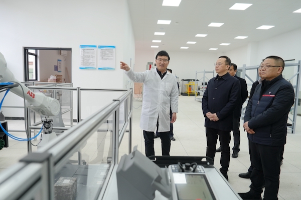地灾所所属湖南省勘测设计院试验检测中心实力雄厚,拥有建筑、公路、水利、铁路等领域多项专项检测资质,通过三位一体国际标准认证等多项权威认证认可,业务范围覆盖市政、交通、食品、农业、地质、环保、雷电防护等多个领域,并成功入选全国土壤污染状况详查检测实验室名录。谈文胜一行走进试验检测中心,仔细查看智能化检测设备运行状况,深入了解实验室专业仪器与自动化设备的运用情况。在参观机器人全自动混凝土压力试验机、全自动混凝土抗渗仪等全流程无人化操作的仪器设备后,谈文胜对地灾所在智能化转型方面取得的成果给予高度赞赏。