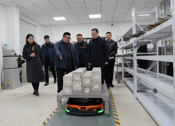 测试中心下属基桩公司工程检测实验室暮云基地,业务范畴广泛,涵盖建筑材料及构配件、道路工程、桥梁等9个专项的工程质量检测及工程勘察。2024年,该基地大力推进设备更新,新采购设备597台套,其中200吨混凝土全自动智能压缩系统和AGV自动送样系统尤为瞩目,能够实现全过程自动搬运与智能检测,技术水平居全省前列。谈文胜一行深入工程检测实验室,认真聆听相关检测技术讲解,详细了解设备运行原理。他对测试中心在提质改造、设备安装调试、新专项资质申报等方面取得的显著成效予以充分肯定。