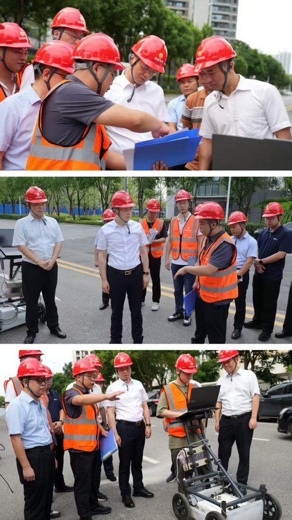 在城调所芙蓉区大河路市政道路塌陷隐患探测作业现场,谈文胜一行沿着作业区域仔细察看,详细询问安全隐患的具体位置、规模及周边地下管网分布情况。该项目创新运用地质雷达、三维建模等技术,通过高密度扫描与精准分析,累计完成216公里道路扫描任务,精准定位95处病害点(含7处地下空洞),构建起“探测—分析—预警—处置”的闭环机制,为打造智能化城市地质安全监测网络奠定了重要基础。谈文胜对项目成效给予高度肯定,强调要持续优化技术手段,推动地质雷达、三维建模等技术与城市管理深度融合,以技术创新赋能城市安全监测。