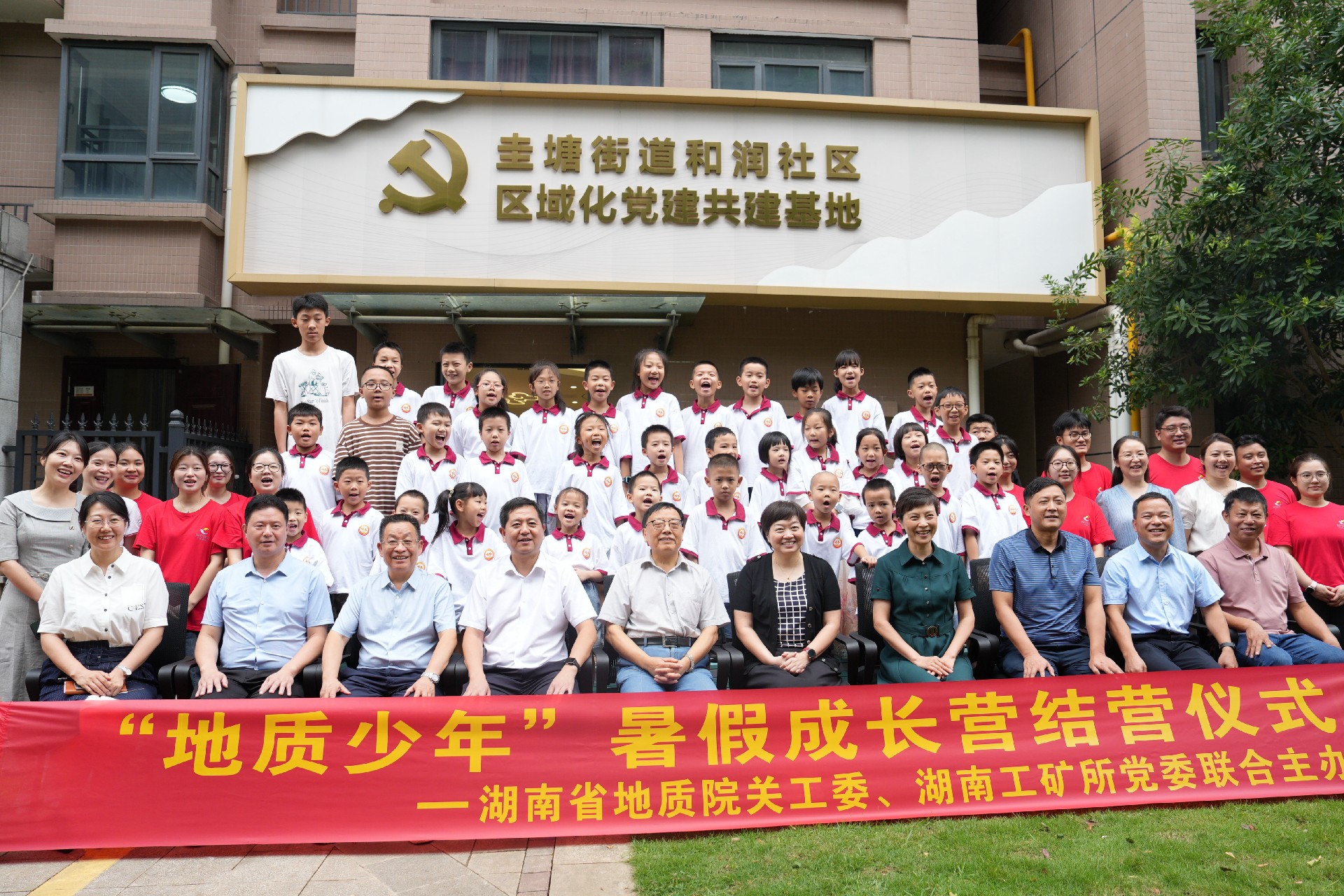 8月13日,由省地质院关工委、省工矿所党委联合组织的“地质少年”暑假成长营结营仪式在圭塘街道和润社区区域化党建互联共建基地举行,标志着为期一个月的成长营圆满落下帷幕。省关工委副主任、省政协原副主席武吉海,省地质院院长张皓、副院长刘凤娟,省委老干部局副局长任罗生,省关工委办公室主任徐向东出席,省工矿所所长吴兵良、党委书记谢海英,雨花区圭塘街道党工委委员、人大工委主任张艳君等参加,仪式由省地质院关工委执行主任叶爱斌主持。