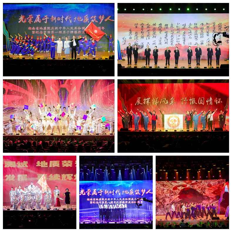 文艺展演以“光荣属于新时代地质筑梦人”为主题,分为“青山不墨千秋画”“乘风破浪会有时”“看似寻常最奇崛”“而今迈步从头越”四个篇章。院机关、院属15家事业单位、院管企业演出人员悉数登场,将歌舞、相声、话剧、朗诵等多种艺术形式汇聚成19个节目,共同彰显了地勘单位职工的精神风貌和爱国情怀。《地质绘山河》《地质光荣 奋斗有我》《罗布泊的回响》《矿世之约》《以迅应汛》《探锑报国的现代传奇》情景重现,一遍遍带观众身临其境地感受了湖南地质人不畏艰险的意志品质;《红旗颂》《我和我的祖国 勘探队员之歌》《守护》《未来已来》《飞天·奋进者之歌》《测绘之光·智绘未来》美轮美奂,一场场视觉盛宴呈现在观众眼前;《亲亲常德待客来》《“筑”福祖国》《我这一家子》《核的力量》《地质湘军群英绘》《山河图·踏梦行》《沁园春·雪》别具一格,一次次点燃了现场观众的似火热情。最终,经过现场与场外双通道的投票,核地质所荣获“最佳风采奖”,地灾所、地信所、物化所荣获“最佳人气奖”,空间所、水环所、资源所、核应用中心、院机关荣获“最佳创意奖”,测试中心、矿调所、生态所、工矿所、中南建设公司、地调所、城调所、遥感所荣获“同心协作奖”。