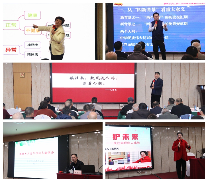 培训邀请了省关工委副主任张志初权威解读政策文件,助力开启工作新局面;院关工委副主任刘汉洪以毛泽东诗词诠释使命担当,为引领青少年指明方向;长沙市关工委办公室主任周畏一分享长沙市关工委工作经验;“青护园”创始人孟繁英孟妈妈讲述守护未成年人故事; 省地调所“五老”代表蔡桂霞剖析心理健康课题。既有政策讲解和实践案例,又有享誉全国的先进典型及深耕湖南地质关工工作的心得体会,理论与实践深度融合,全方位拓展学员视野,丰富知识储备,提升专业素养。