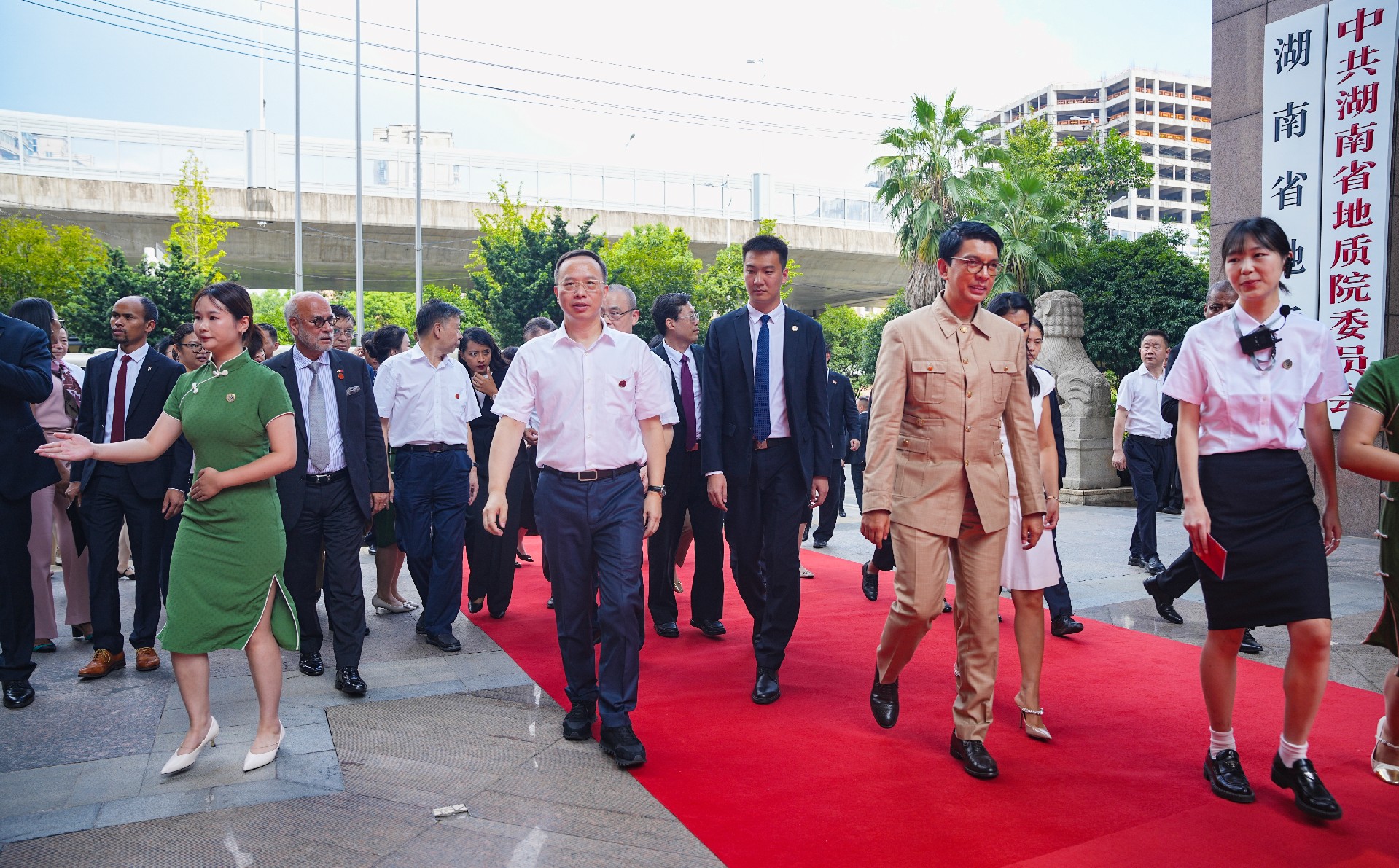 9月8日下午,来华出席中非合作论坛北京峰会的拉乔利纳总统来到湖南省地质院、湖南省地质实验测···
